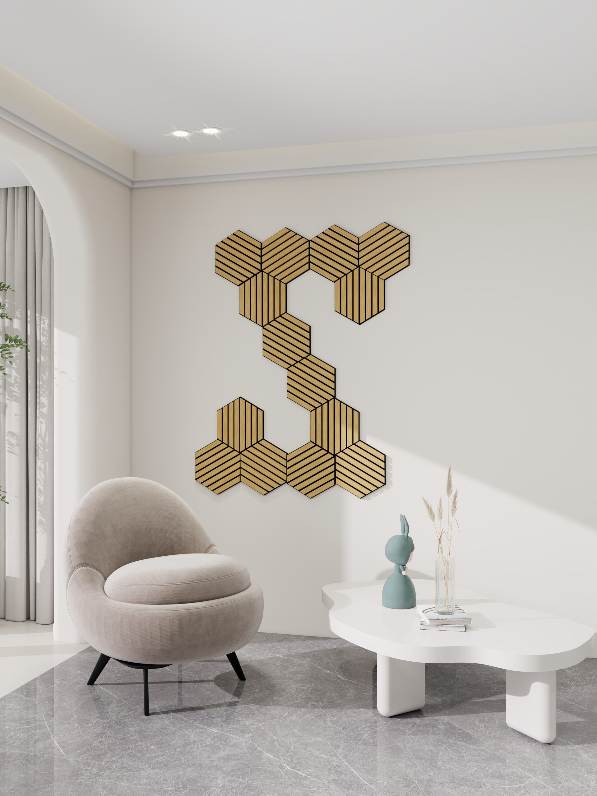 Panou decorativ modular Hexagon 3D cu relief liniar – Design versatil si modern