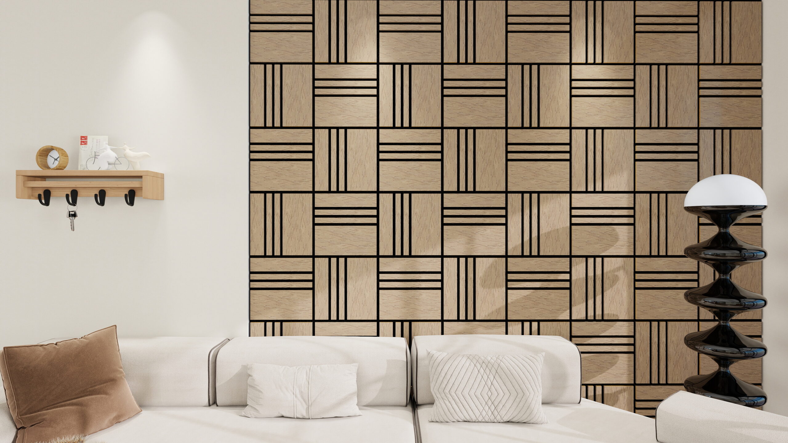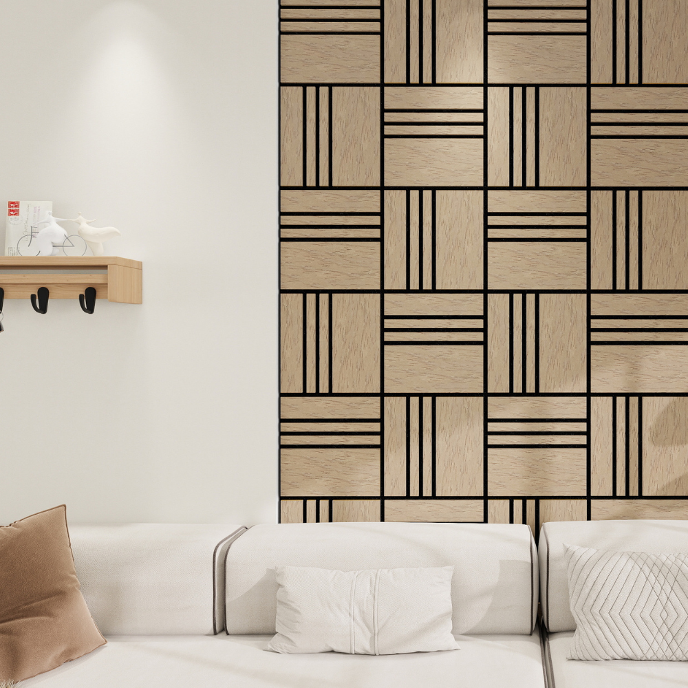 Panou decorativ modular premium Patrat 3D cu 3 linii – Eleganta geometrica si versatilitate