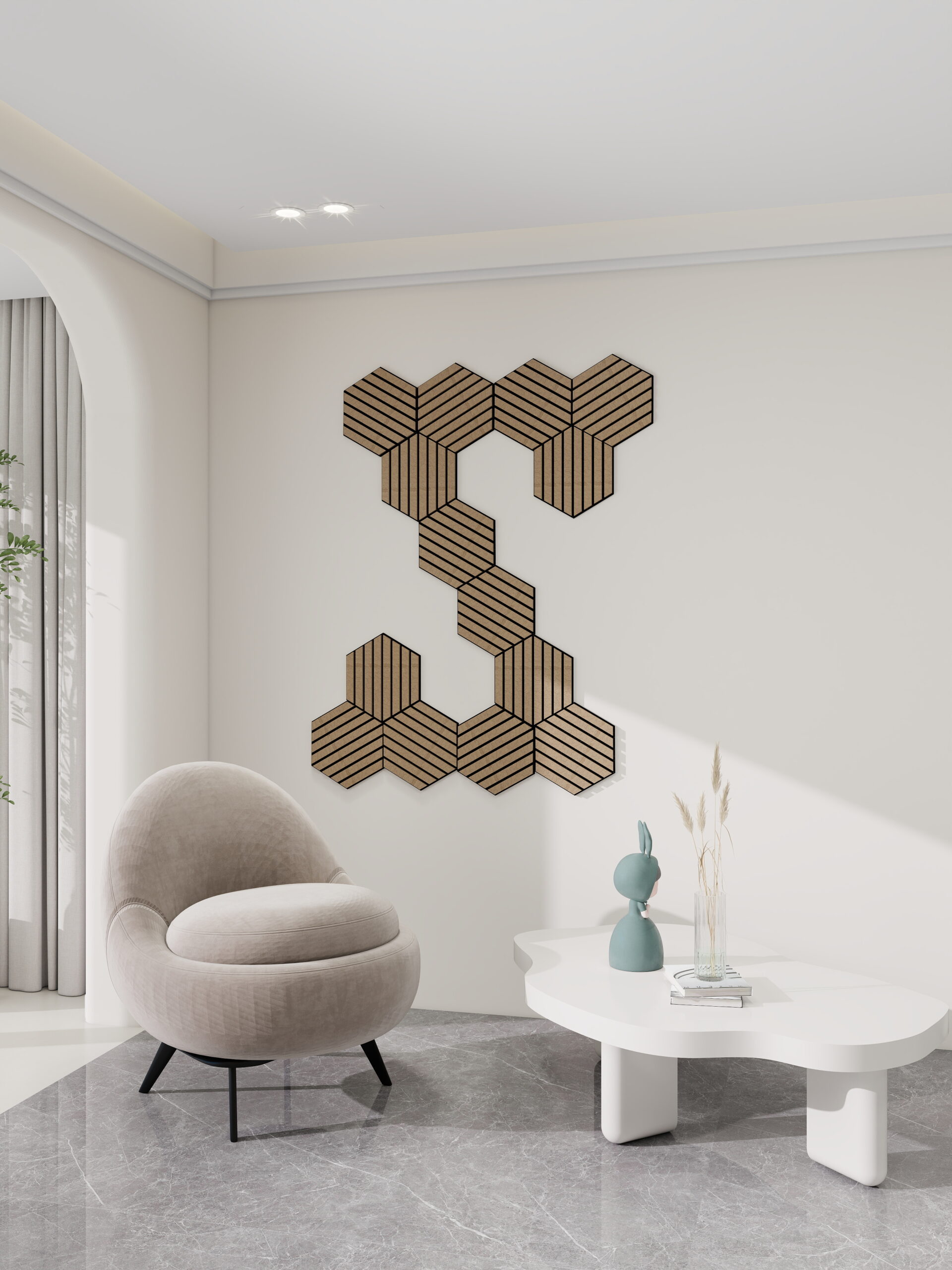 Panou decorativ premium modular Hexagon 3D cu relief liniar – Design versatil si modern
