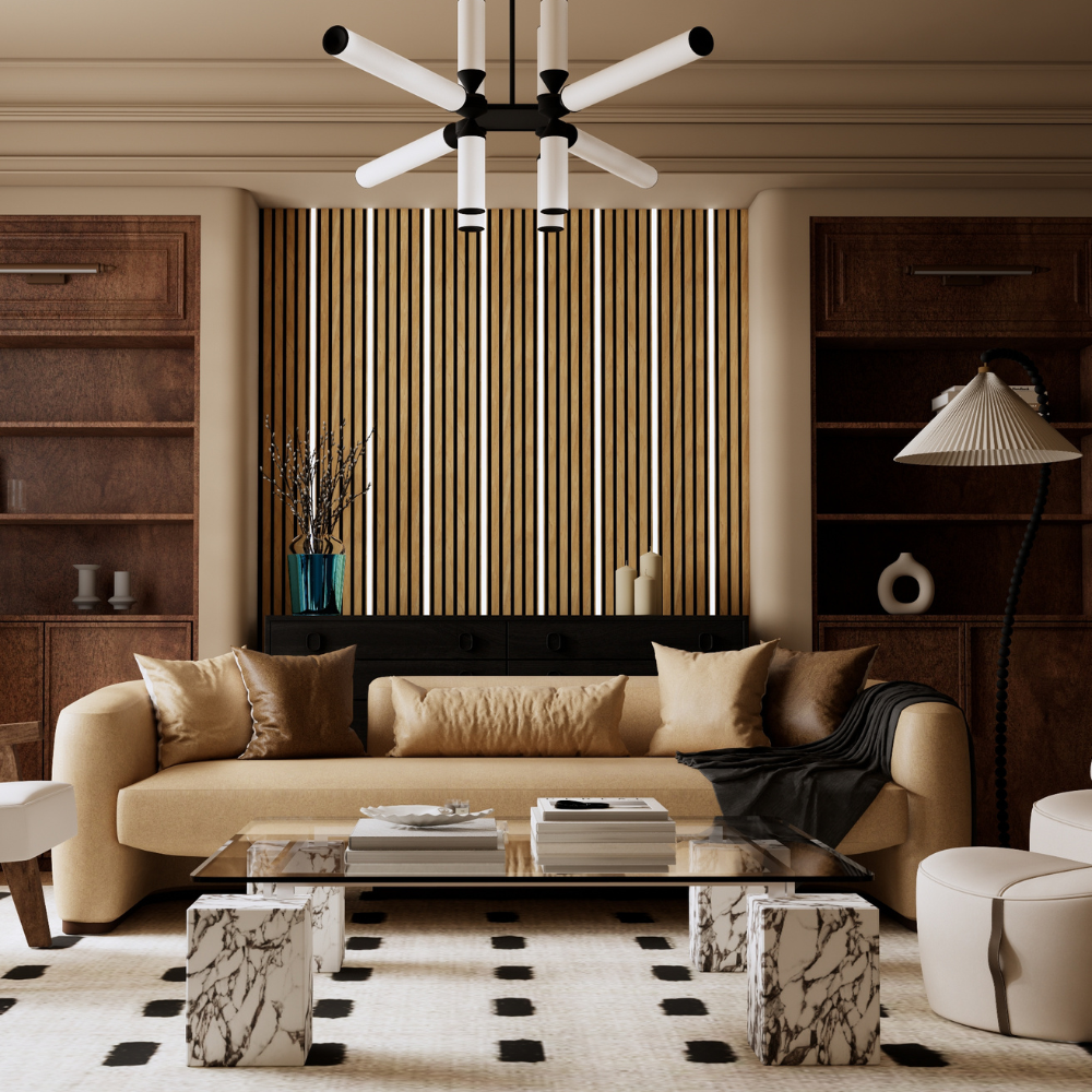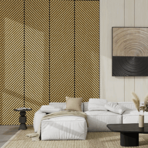 Adauga un plus de eleganta si functionalitate spatiului tau cu un panou decorativ acustic dotat cu trei lamele semitransparente pentru iluminare LED adaptabile, ce permite personalizarea ambiantei prin iluminare discreta si rafinata. Ideal pentru interioare contemporane, acest panou imbina estetica sofisticata cu beneficii acustice reale.
