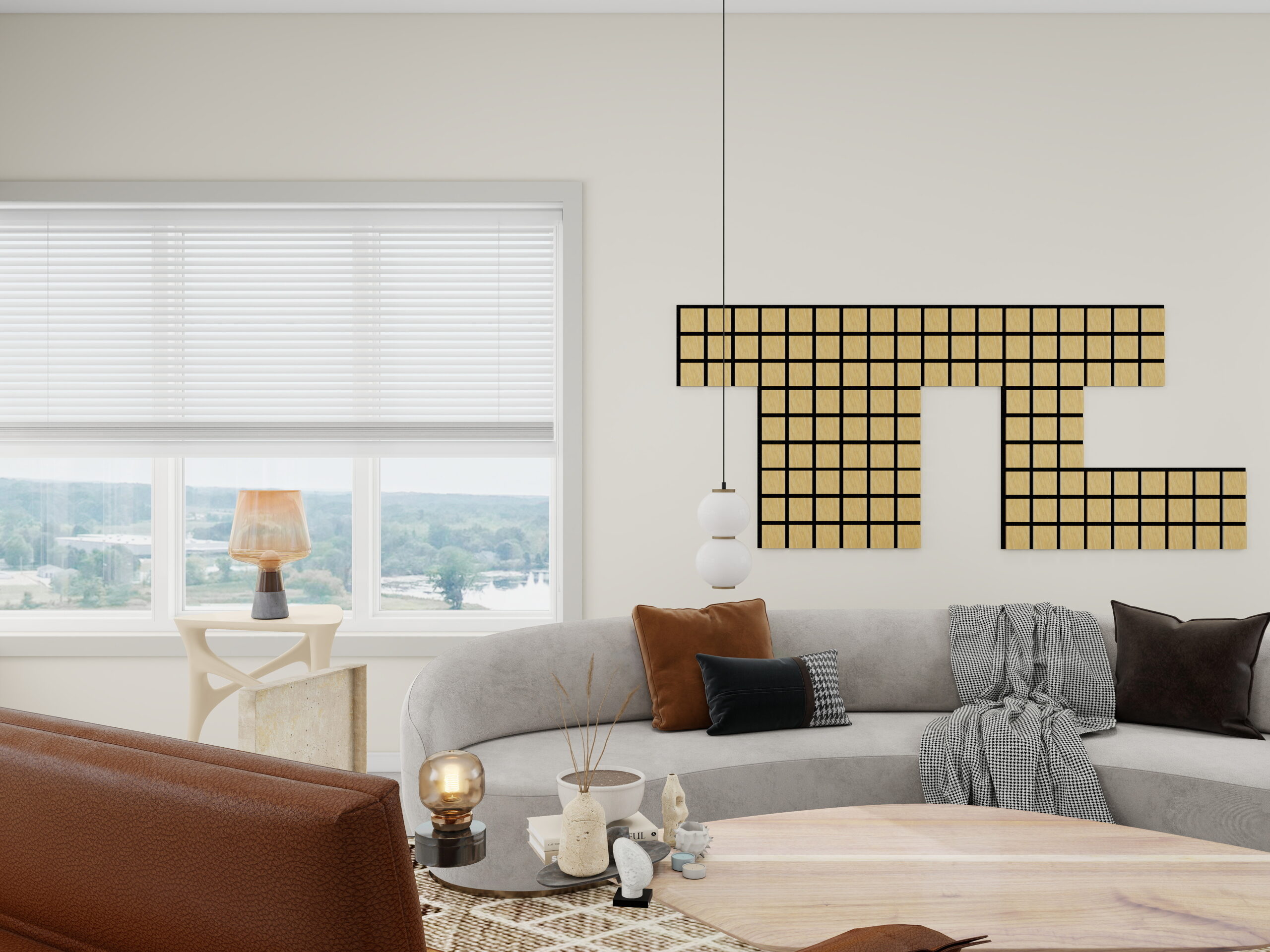 Adauga un accent rafinat oricarui spatiu cu panoul decorativ modular Square Design, unde liniile clare si formele patrate se imbina cu textura naturala a lemnului si fundalul negru elegant. Cu dimensiunile de 300 x 300 mm si grosimea de 18 mm, acest panou compact este alegerea ideala pentru decoruri personalizate, perete-accent sau proiecte creative cu un aer contemporan.