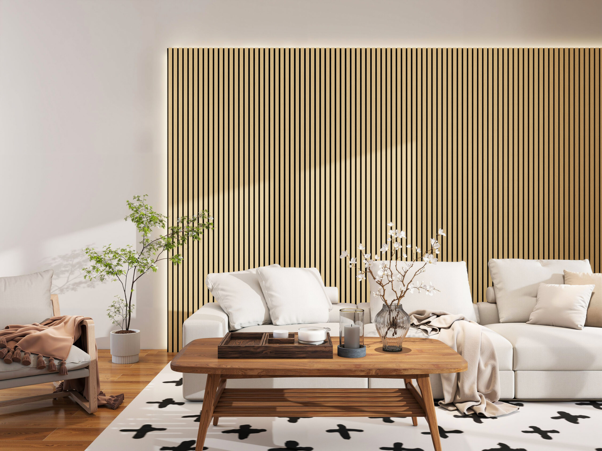 Da viata peretilor tai cu un panou decorativ acustic care imbina designul sofisticat cu performanta acustica superioara. Creat din fetru fonoabsorbant si riflaje verticale din MDF, acest panou transforma instant orice incapere intr-un spatiu modern, linistit si placut vizual.