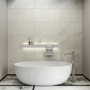 Panou SPC Premium Marble Series, Impermeabil si Ultra-Durabil, 900 x 450 x 4 mm (0.41mp suprafata acoperita), culoare Fildes Lucios – Ivory Marble, Velvet Design