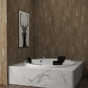 Panou SPC Premium Marble Series, Impermeabil si Ultra-Durabil, 900 x 450 x 4 mm (0.41 mp suprafata acoperita), culoare Cafeniu Lucios – Marmura Terracotta, Velvet Design