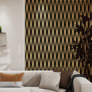 Panou acustic Riflaj decorativ Armonico Line, MDF cu furnir natural, culoare Stejar Royal, 2400x600x18mm, atenuare zgomot 80%