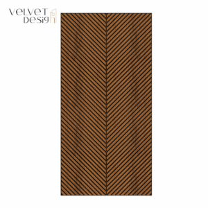 Riflaj decorativ V-Line, panou acustic din lamele MDF cu furnir natural si baza fetru PET, design simetric in oglinda, culoare Stejar Royal, 2400 x 600 x 21 mm, 1.44 mp suprafata acoperita, atenuare zgomot 80% (NRC 0.8), Velvet Design